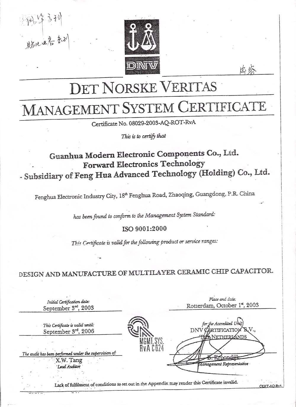 | 风华高科是全球贴片被动元器件排名八强的知名企业 ,早在2000之前年就实现了贴片电容,贴片电阻,贴片电感,贴片二极管,贴片三极管,贴片磁珠,贴片磁珠排,贴片功率电感,贴片钽电容,贴片晶振,贴片电解电容等系列产品的无铅化和标准化,通过了ISO9000和ISO1400认证。